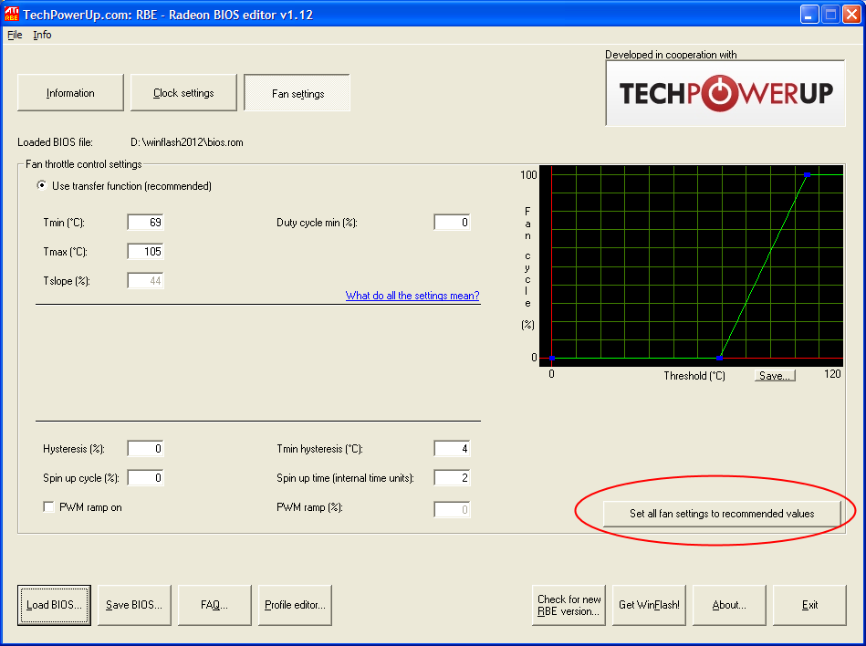 Bruk så RBE , load editedvga.rom , gå på FAN settings i RBE , og klikk "Set all fan settings to recommended value"