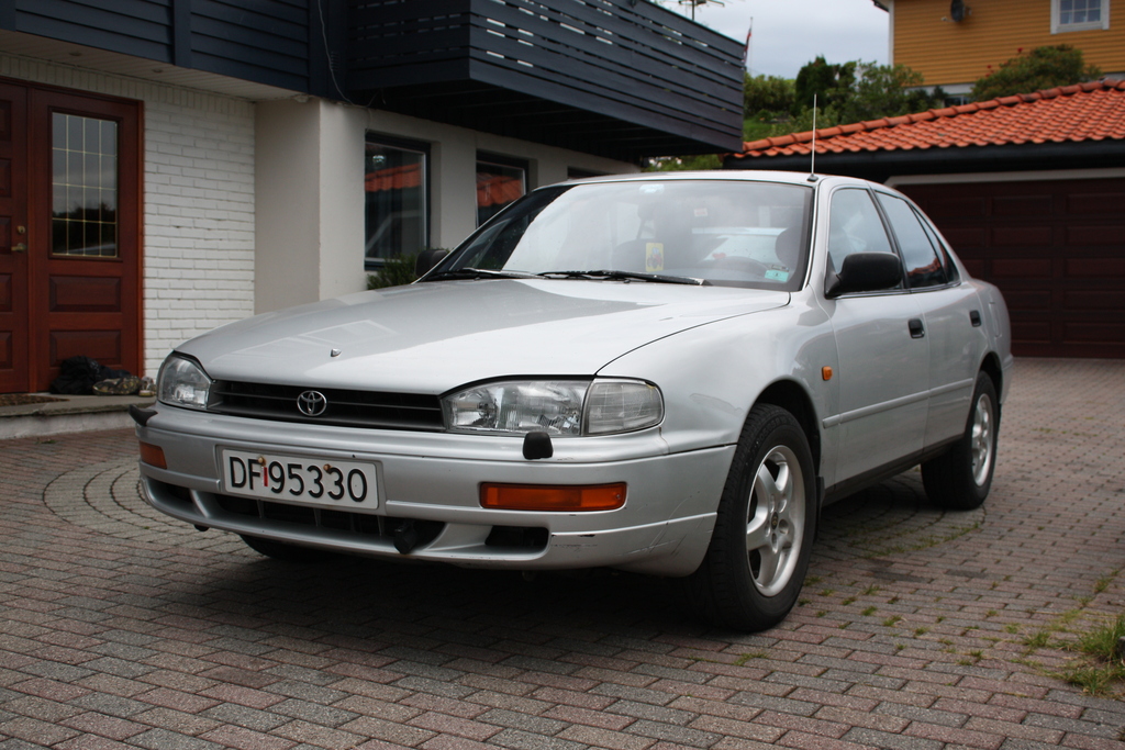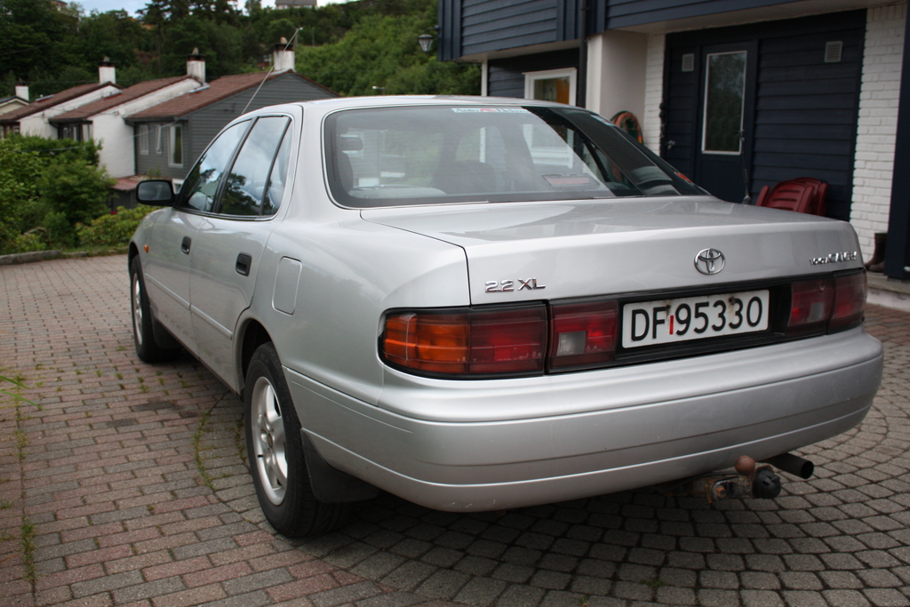 endrebjo Skrevet 7. juli 2008 Skrevet 7. juli 2008 (endret) Toyota Camry 2.2XL '92. God bil som aldri slutter å gå. Massevis av plass, gode seter og faktisk en del kjørekomfort. Motoren drar greit (136 hk), men har en litt irriterende nykking når man slipper opp gassen. Girkassen kunne også vært mer presis, men hva kan man forvente av en bil som har gått 320.000 km? Bomgirer ikke, men jeg bruker litt lenger tid på å gire enn i f.eks Golf '02. Den ser ikke så værst ut heller. Kanskje litt kjedelig, men ihvertfall ganske strøken. Både utenpå og inni. Overraskende mye luksus inni til å være såpass gammel synes jeg (el.vinduer, varme i setet, godt varmeapparat, 4 justeringer på setet, god servo, fjernstyrt sentrallås). Masse gøy for 20 høvdinger. Endret 8. juli 2008 av endrebjo