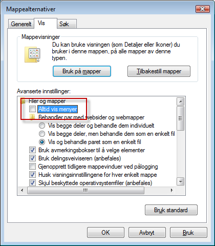HiSpeed Skrevet 30. juni 2008 Skrevet 30. juni 2008 Endres under Mappelaternativer. Fjern haken og verktøylinjen er borte. Den kan hentes midlertidig frem ved å trykke på Alt-tasten.