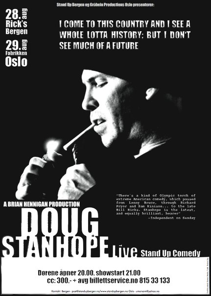 umorsom Skrevet 9. juli 2008 Skrevet 9. juli 2008 Hei! Jeg vil herved meddele at amerikansk samfunnskritiker og politisk satiriker Doug Stanhope kommer til Bergen torsdag 28. august og Oslo fredag 29. august. Stedene er Ricks i Bergen og Fabrikken i Oslo! Doug Stanhope overtar stafettpinnen fra den forhenværende Bill Hicks, Sam Kinison før ham og selvsagt den legendariske Lenny Bruce. Dessverre er George Carlin ikke lenger i blant oss, men jeg kan betrygge alle med at Doug Stanhope er vel så opplyst, og i likhet med Carlin gir han et spark til alle som fortjener det. Om man står på venstre- eller høyresiden politisk, kan man aldri likevel være trygg. Stanhope ser ikke logikk i form av en endimensjonal politisk linje, men snarere et kuleformet multidimensjonalt perspektiv. Facebook-events: Oslo: http://www.facebook.com/event.php?eid=25222115999&ref=ts Bergen: http://www.facebook.com/event.php?eid=25589395109 YouTube-klipp: Om innvandring: http://www.youtube.com/watch?v=iir2ZQEEbLA Om marihuana: Om religion: Om frihet: