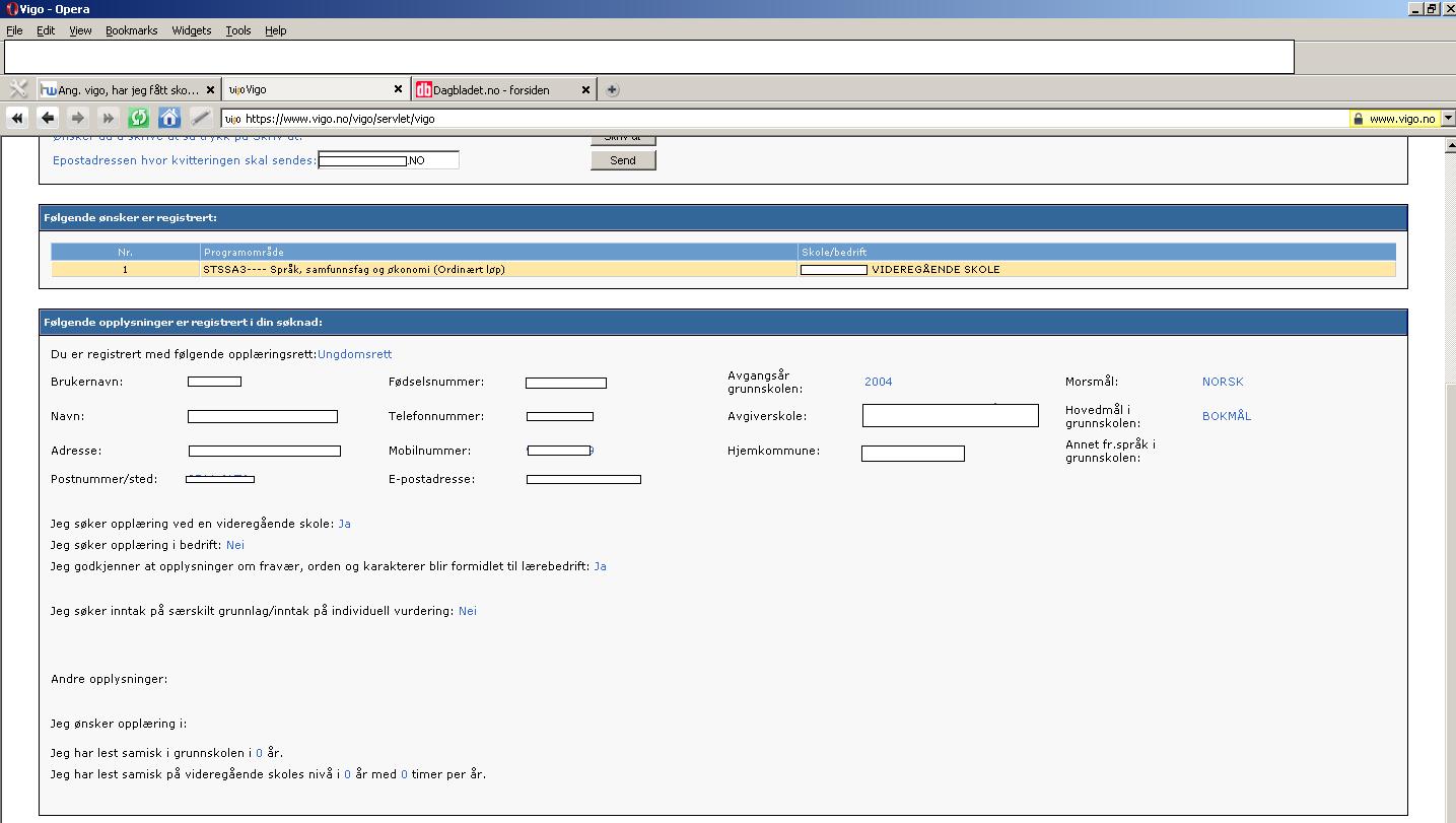 haagen Skrevet 17. august 2008 Skrevet 17. august 2008 (endret) Ja da har det seg sånn at jeg takket ja til noe på vigo.no for en stund siden. Har ikke vært inne på vigs siden den gang, og sjekket den i dag. For skolen starter i morgen. Så ser jeg: Status: Svart JA til skoleplass. Jeg ønsker tilbudt plass: Ikke svart (vil dette si at jeg ikke har fått skoleplassen?) Blir mest forvirra av vigo.no greia, har jeg fått skoleplassen? Endret 17. august 2008 av haagen